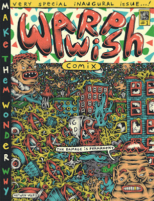 Ler em 2017 o Warpwish é como voltar aos anos 90 (não que isso seja importante) ou mais especificamente à antologia Zero Zero da Fantagraphics. Digo isto porque a Zero Zero ora publicava os autores novos do final de 90, quer americanos como o francês Blanquet ou o sueco Max Andersson, quer recuperava autores do "underground comix" dos 60 como Skip Williamson ou Kim Deitch. Isto para dizer que há um estilo de "heavy cartooning" no trabalho de Ward, que de certo modo foi-se perdendo ao longo deste milénio ora como os minimalismos à Lewis Trondheim ou do traço espontâneo a grafite de Anke Feuchtenberg foram influenciando grandiosamente as produções comerciais ou alternativas de BD. Este aspecto barroco de Ward pode ser ainda visto aqui e acolá, como o "nosso" Rudolfo quando está em modo de lambidela mas é realmente cada vez mais raro...