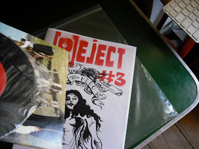 É sobretudo um livro que serve de promoção dos ateliers, que num primeiro volume talvez viva ainda de alguns restos de trabalhos mais do que outra coisa. Mas o irónico desta "mag" é que conhecendo a maioria dos seus autores, sei o quão egocêntricos ou (pelo menos) individualistas eles são - por serem free-lancers explica a personalidade? - curiosamente conseguiram fazer algo que outros colectivos mais comunitários não conseguiram fazer, que é uma publicação que apresenta um estúdio pronto para qualquer cliente ao mesmo tempo que despejam algum material para se divertirem. É curioso, e por isso merece os parabéns pelo modelo proposto. A Chili Com Carne fica com alguma inveja! É a vingança dos Nerds!Por fim, o melhor porque é fotocópia e trás um vinil de música "obscura portuguesa" com problemas escatológicos Black Metal - mim calhou o Rancho das Rendilheiras da Praça, de Vila do Conde, com sérios problemas de menstruação! É o terceiro número do Reject'zine (Mai'10) de Andreia Rechena que abandona as participações alheias e a inércia de fazer bd para transformar o título numa publicação exclusiva do seu trabalho e de uma bd (de continuação), A Trágica Tricofobia de Zulmira. Trash puro, divertido e com Gore o suficiente para ser fixe! Alguns desenhos são freak-chic manhosos outros são bem alinhados quase a lembrar Alex Baladi. Uma esquizofrenia portanto! Tudo bem, desde que não venham a afectar a continuação da coisa...