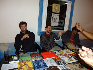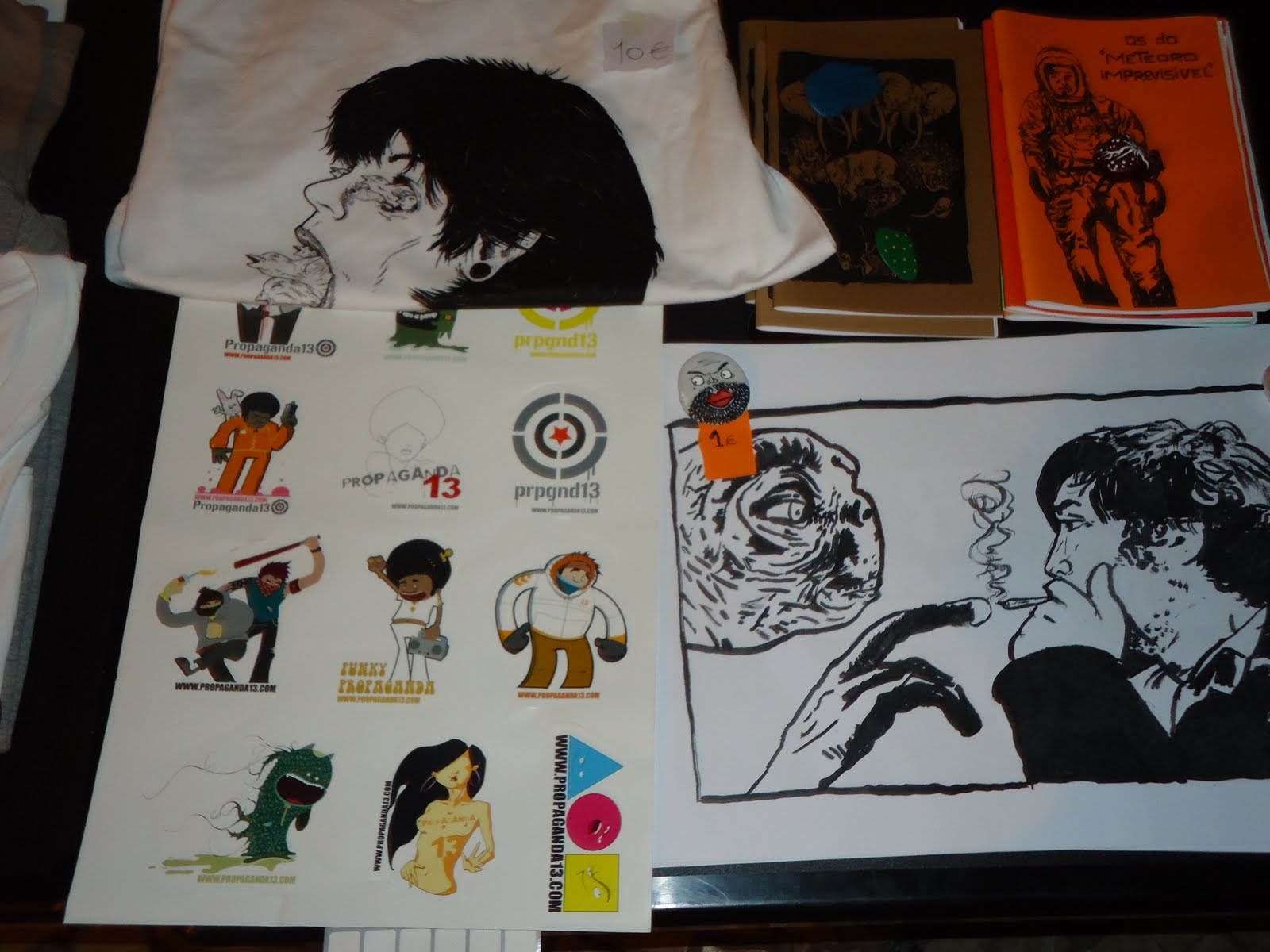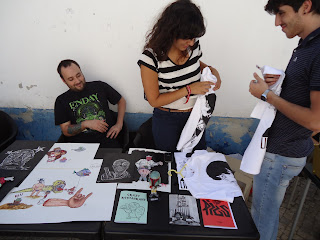 Por volta da 16 horas montámos a banca pela última vez, escrevemos num papel "super discount" e vendemos tudo por metade do preço!!! O Mattias Elftorp foi ter connosco para trocar os dois primeiros mega-volumes compilados do Piracy is liberation.